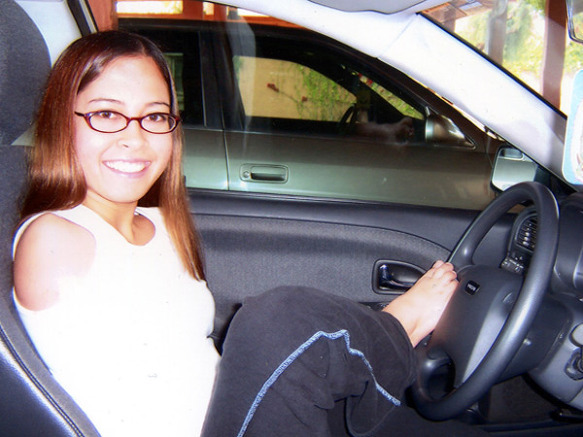 그녀는 장애인 면허가 아니라 일반 운전 면허를 취득하였다.