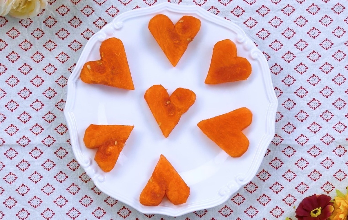 수박을 색다른 모양으로 자르는 방법을 하나 더 알려드릴게요. 하트 모양으로 귀여운 플레이팅을 완성해 보세요!